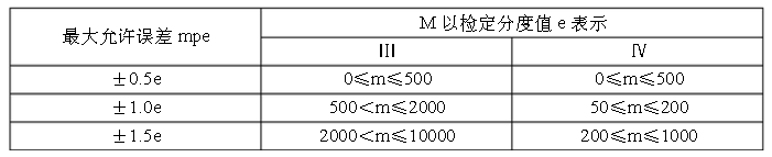 例如:一臺***稱量500kg的Ⅲ級電子臺秤,檢定分度值e =0.1kg